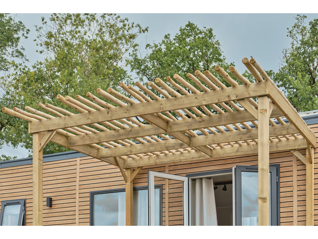 Les versions brise-soleil Eucalyptus ou toit bois offrent une meilleure intégration tout en offrant une protection solaire.