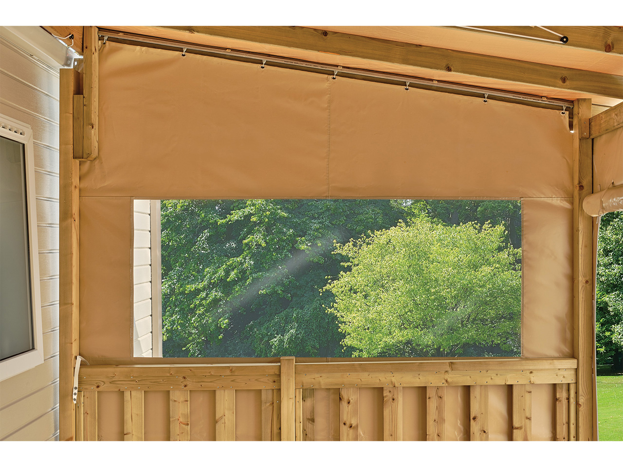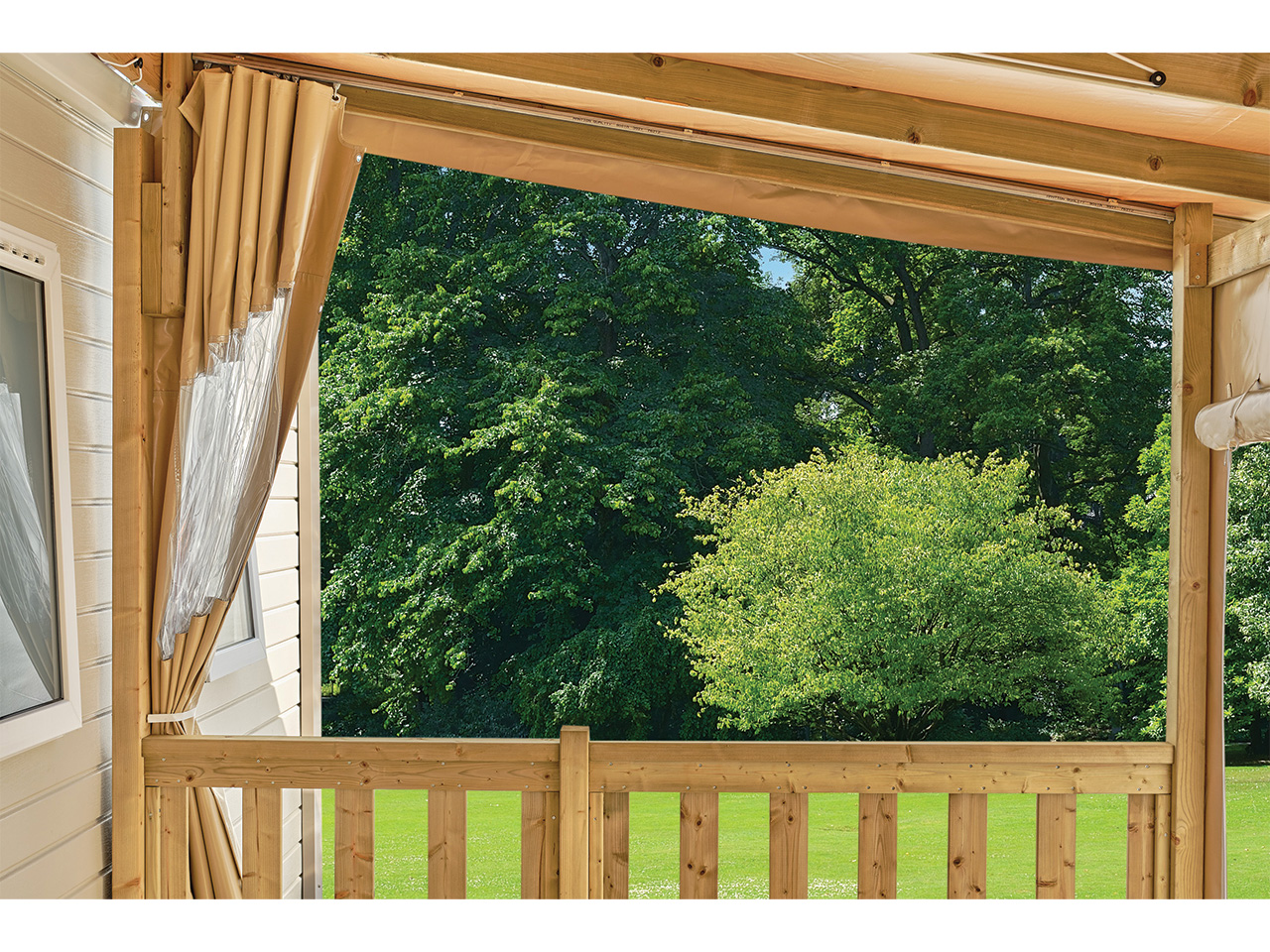 Système coulissant pour toiles de façades et joues terrasse bois Gamme Classique pour mobil-home