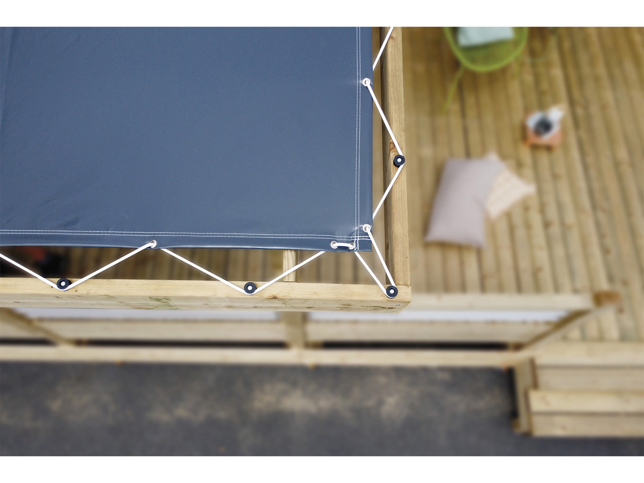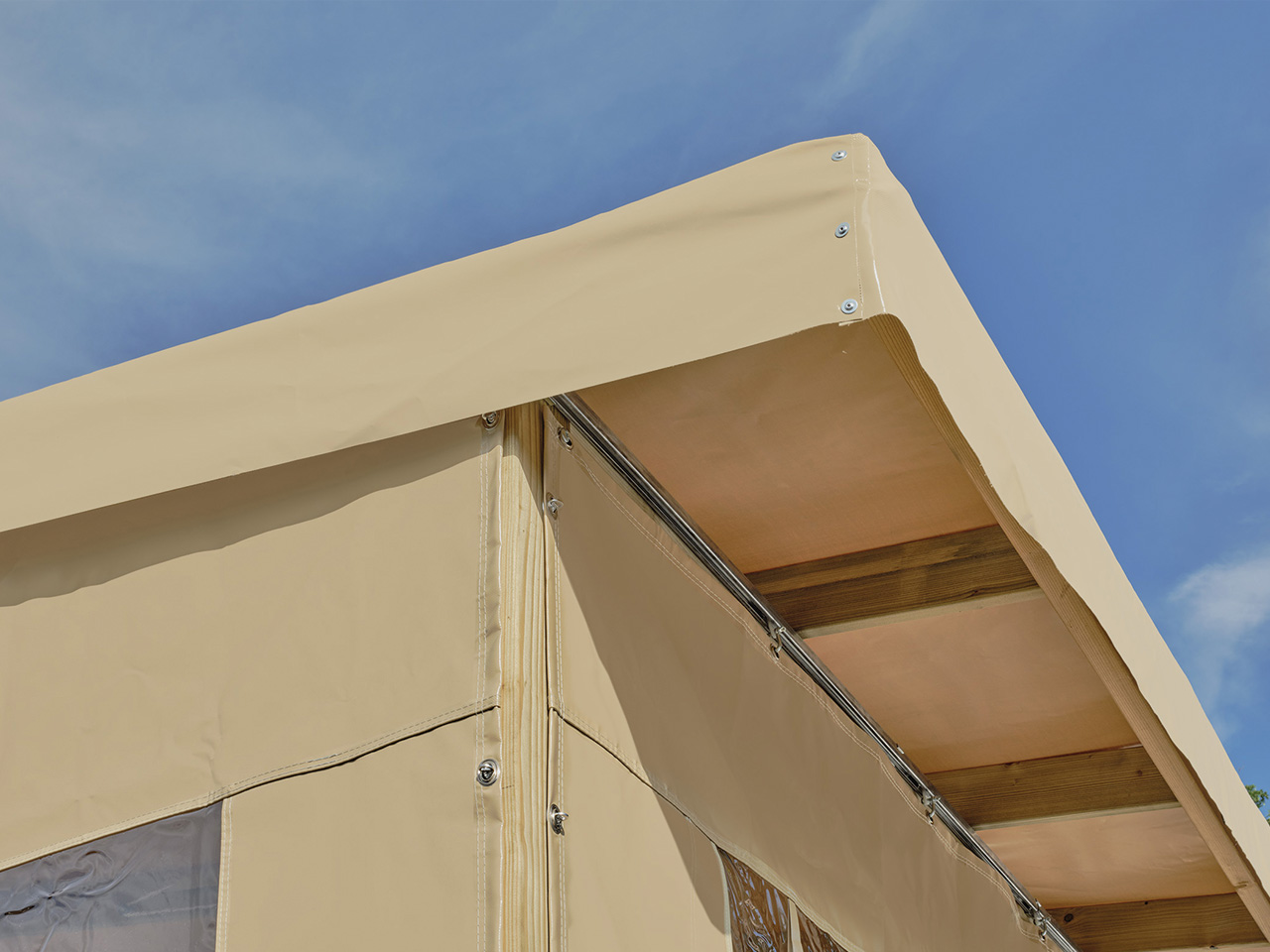 - Longueur de la couverture : 3,5 m (4 poteaux) | 5,0 m (4 poteaux) | 6.5 m (6 poteaux).